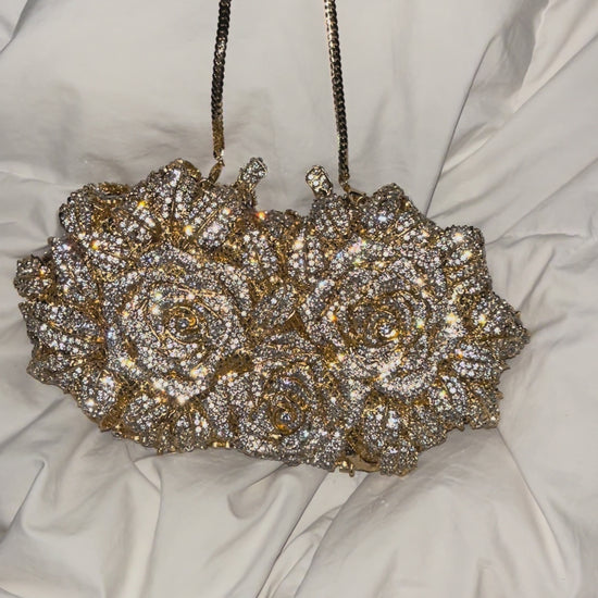 Bolso clutch rosas diamantes